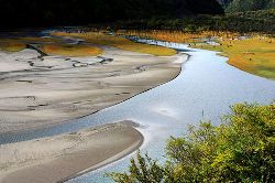 康東地區(qū)海拔最低的海子。澄碧的湖水與雪山融為一體,海子中細(xì)紗沉積,形成色彩斑斕的河床,令人仿佛置身海濱。海子中還有“湖中長樹,樹會走路”、“石頭說話”、“半壁穴居”等神奇景觀。