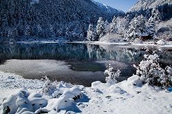 進(jìn)入木格措的冬天就是進(jìn)入了一片美麗的冰雪天地,然而在這里,除了冰雪,還有陽光、沙灘、藍(lán)天處處充滿著浪漫的氣息。早晨,當(dāng)你站在海拔3780米的木格措海子觀景臺前,閉上眼睛細(xì)細(xì)品味雪山后暖暖陽光照射在身上的感覺;工作、生活、煩惱……一切拋在腦后!在景區(qū)的樹上到處是漂亮的冰掛,讓人仿佛一下子進(jìn)入純潔晶瑩的人間仙境;在海子旁自然形成的一大片名為黃金海岸的沙灘,更是給來到這里的人們帶來情海的感受。