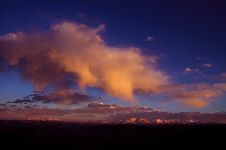 云在天上飄動(dòng),影子在大地上掠過,碧綠的草地在云流的映襯下五彩斑斕,猶如一塊巨大的迷彩布,把草地打扮得分外妖嬈。云不墨守成規(guī),每時(shí)每刻都有新創(chuàng)意;云有層次的美,有型有款。時(shí)刻花樣百出、千奇萬巧的云景,常使人遐想聯(lián)翩。我愛高原的云,因?yàn)橐嗾嬉嗷玫脑品路鸪闪诵撵`遠(yuǎn)游的載體,寄托著人們的留戀與追求。