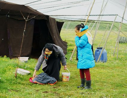達珍和她的丈夫是我州爐霍縣宗塔草原上普通的牧民,育有一對兒女,都在縣上讀書,小兒子上小學,大女兒讀初中,放暑假,11歲的女兒回到了牧場,幫助阿爸、阿媽放牧。女兒的到來,讓達珍家每一天都充滿了歡笑,7月中旬的一天,筆者來到了這里,用像機記錄了達珍的一個早晨,那是一個朝霞滿天的開始?!?郭昌平 攝影報道