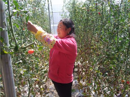 本網(wǎng)訊(馬建華 文/圖)陽(yáng)春三月,爐霍大地仍然一派蕭條景象。然而在爐霍縣斯木鄉(xiāng)吉絨村的蔬菜大棚里,卻綠意盎然。紅彤彤的樹番茄、碩大的茄子、長(zhǎng)勢(shì)喜人的青椒、紅艷艷的花卉,大棚里溫暖的春色吸引了縣城市民和游客前來觀光,購(gòu)買新鮮的蔬菜。比縣城菜市場(chǎng)價(jià)格便宜一半的蔬菜,讓市民爭(zhēng)相前來購(gòu)買。吉絨村村民將土地流轉(zhuǎn)給蔬菜種植公司,收取土地流轉(zhuǎn)費(fèi),在蔬菜大棚里打工,每天還有100元錢的收入,而且學(xué)到了先進(jìn)的蔬菜種植技術(shù),為今后發(fā)展蔬菜大棚、種植反季節(jié)蔬菜、增加經(jīng)濟(jì)收入打下了堅(jiān)實(shí)基礎(chǔ)。爐霍縣在發(fā)展高原特色現(xiàn)代觀光農(nóng)業(yè)方面邁出了可喜步伐。