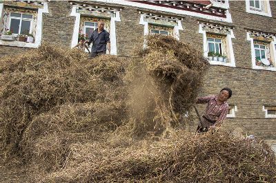 康定市姑咱鎮(zhèn)達(dá)杠村村民李翠軍一邊采摘著蘋果,一邊喜悅地告訴記者,達(dá)杠所產(chǎn)的蘋果個頭大、色澤好、吃味好、耐儲藏,到目前,全村蘋果種植面積800多畝,去年蘋果產(chǎn)量160萬斤,今年雨水好,蘋果產(chǎn)量將猛增到200萬斤以上。目前,村子里蘋果種植大戶家庭年收入過10萬元的就有20多戶??刀ㄊ袑⑦_(dá)杠村打造成川藏觀光農(nóng)業(yè)第一村。按照規(guī)劃,村里會進(jìn)一步擴(kuò)大蘋果種植面積,以蘋果利用為核心,發(fā)展“春賞花、夏攝影、秋摘果、冬體驗”四季觀光農(nóng)業(yè)產(chǎn)業(yè)。五谷豐登六畜興旺,甘孜高原共慶豐收。農(nóng)民豐收節(jié),它既是億萬農(nóng)民慶豐收、曬豐收的節(jié)日,也是全社會享豐收、助增收的節(jié)日;既寄托著農(nóng)民的追求、農(nóng)民的希冀,也承載著全體中華兒女的深情與追憶;中國農(nóng)民豐收節(jié),農(nóng)牧民收獲的不只是甜蜜蜜的果實,鼓起的不只是沉甸甸的荷包,更是滿滿的榮譽(yù)感、幸福感、獲得感!