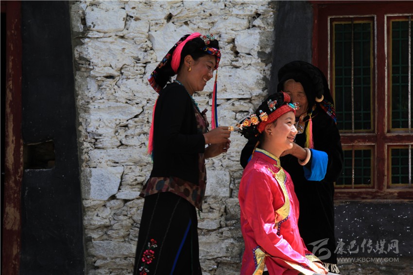丹巴女性成年禮的形成,是有多方面的因素綜合促成的。首先,嘉絨藏族在歷史上對女性不歧視,女性成年當(dāng)家,招婿上門也是常有的事,并且形成當(dāng)?shù)鼗橐鰻顟B(tài)的重要組成部分。此外,丹巴婚俗中的擇偶相對而言是較為開放和自由的,成年男女青年可以自由求婚擇偶,而成年的界定是男性18歲,女性17歲。成人禮則可以說是女性成年的公示方式。