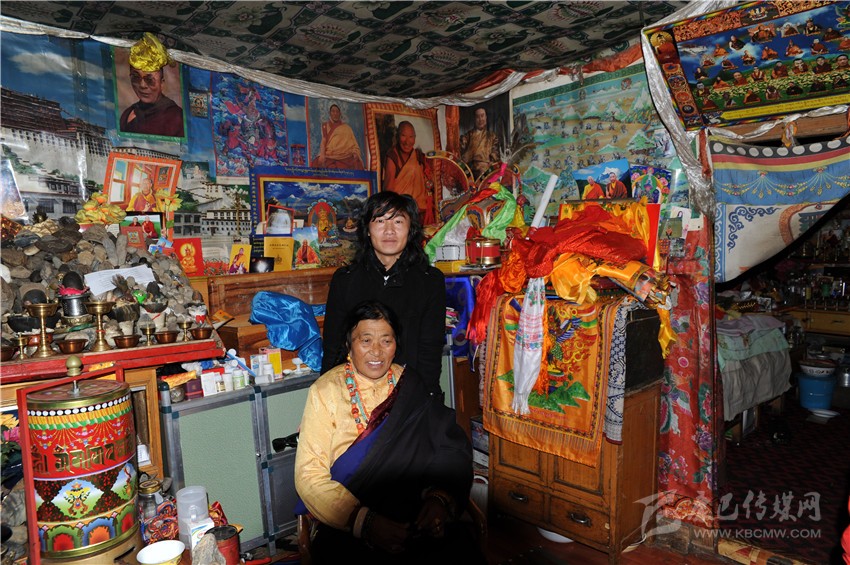 作者與格薩爾說(shuō)唱藝人俄珍卓瑪。
