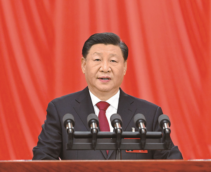 習(xí)近平代表第十九屆中央委員會向大會作了題為《高舉中國特色社會主義偉大旗幟 為全面建設(shè)社會主義現(xiàn)代化國家而團結(jié)奮斗》的報告。習(xí)近平指出,中國共產(chǎn)黨第二十次全國代表大會,是在全黨全國各族人民邁上全面建設(shè)社會主義現(xiàn)代化國家新征程、向第二個百年奮斗目標(biāo)進軍的關(guān)鍵時刻召開的一次十分重要的大會。大會的主題是:高舉中國特色社會主義偉大旗幟,全面貫徹新時代中國特色社會主義思想,弘揚偉大建黨精神,自信自強、守正創(chuàng)新,踔厲奮發(fā)、勇毅前行,為全面建設(shè)社會主義現(xiàn)代化國家、全面推進中華民族偉大復(fù)興而團結(jié)奮斗。