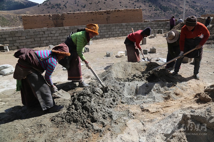 在工程實施中,全組的村民相互幫助,齊心協力建新房?!白蛱齑蠹?guī)臀野逊孔有薜冒桶瓦m適、漂漂亮亮的。我也來幫四郎曲西建房。這樣你幫我,我?guī)湍?,你幫他,要不了多久,我們這里家家戶戶都會很漂亮?!闭谠鹤永飻嚢杌覞{的村民格絨多登微笑著說。
