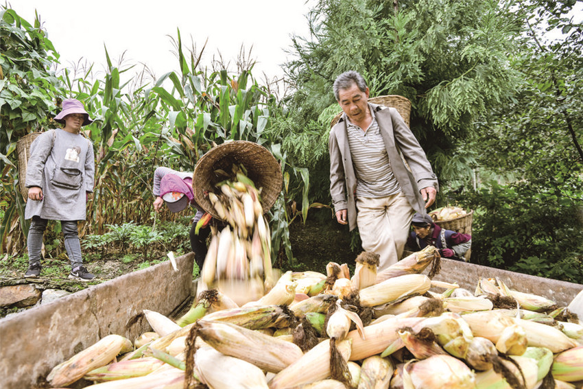 玉米喜獲豐收, 村民笑開顏。