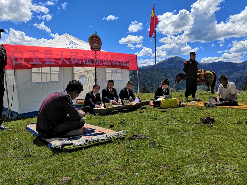 充翁旦珠(左三)在巡回法庭審理案件。